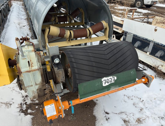 Unused 1000ft roll of 30" 3 ply belting included, c/w hoods, no support legs. Next to new condition.